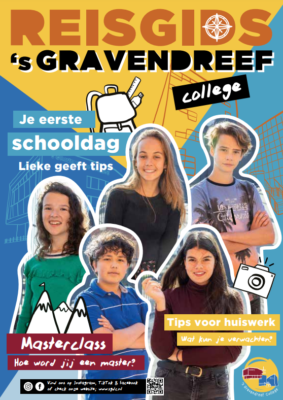 Groep-8 leerlingen hebben de 's Gravendreef brugklasfolder de "Reisgids" ontvangen. In deze folder staan tips voor een mooie tijd op het 's Gravendreef College en vind je informatie over onze school. Aan de ouderkant staat informatie over o.a. de bouwstenen van het 's Gravendreef College, masterclasses en de begeleiding. Klik op de afbeelding en bekijk de folder!