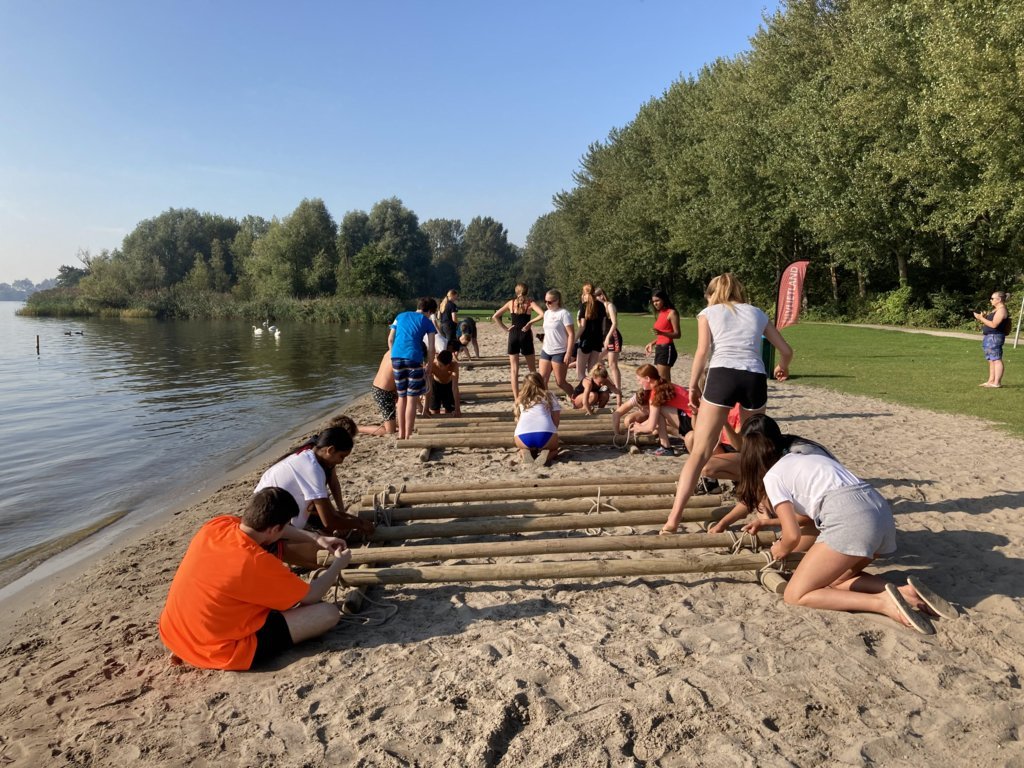 Op deze zonovergoten dag waren er allerlei activiteiten op en rondom het water. Er werden vlotten gebouwd waarbij de samenwerking en het teamwork getest werden.